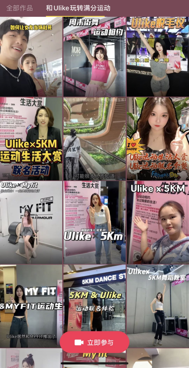 另一方面,抖音生活服务「运动生活大赏」更站在行业的视角,通过“跨界合作”,链接Ulike与5KM舞蹈室、MYFIT健身工作室等线下场景,共同打造年轻人热衷的精致运动生活场景,不仅让品牌和商家通过在与用户接触的触点上制造惊喜,建立起与用户更深的联系,也实现了趋势场景的有效内容种草,和“精致运动用Ulike”和“精致运动上抖音”的心智渗透。