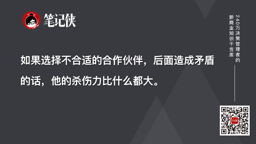 如果选择不合适的合作伙伴,后面造成矛盾的话,他的杀伤力比什么都大。