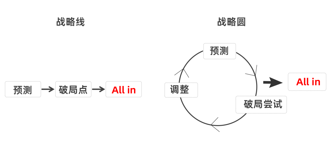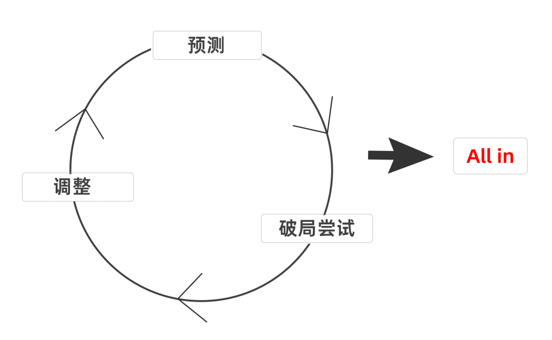 预测、破局点、All in分别对应做战略的三个大环节,形势分析、路径选择、以及资源配置。这三个环节,搞错哪个都成不了事。