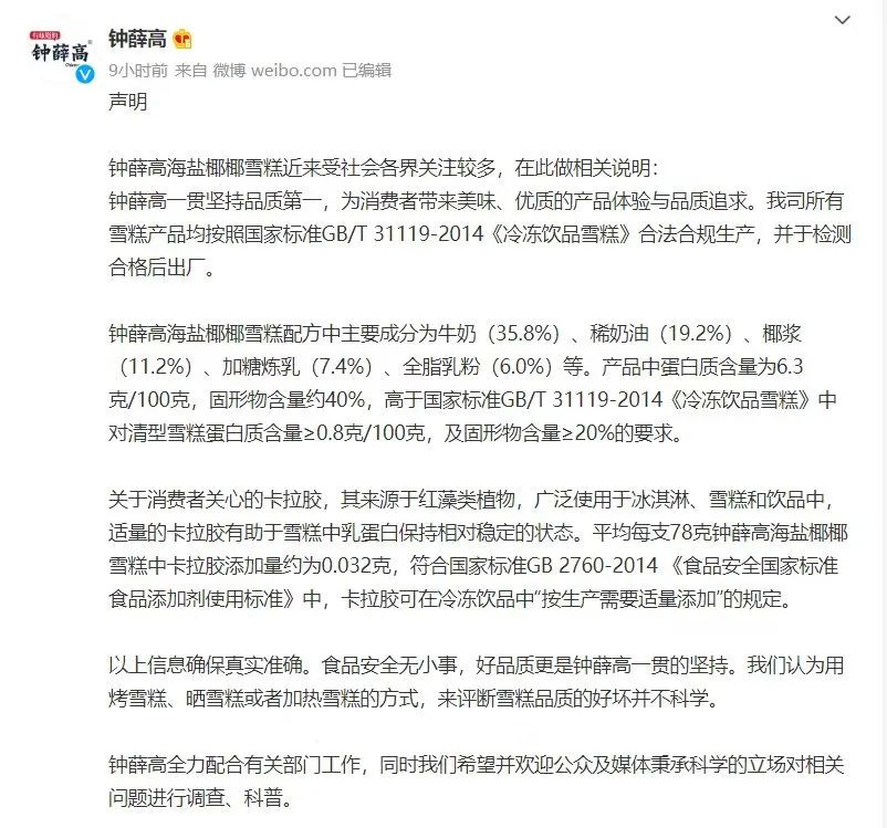 反观钟薛高此前“雪糕刺客”、“高温不化”两次重大公关危机,品牌方非但不重视,还摆出一副高高在上的样子、用暴晒、加热等手段拿来评价雪糕不科学教育消费者。钟薛高创始人林盛甚至喊话,“它就这个价格,你爱要不要”。