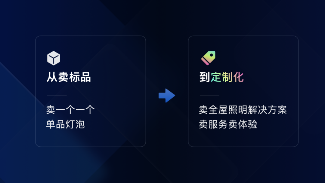 刘之瀚主导的数字化战略部,在和用户沟通中意识到一个问题:用户要的不仅仅是想买一个灯泡,而是希望家中照明舒适,为家里增添氛围。