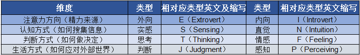 MBTI是Myers-Briggs Type Indicator 的简称,它通过注意力方向、认知方式、判断方式、生活方式四个维度的测量,将个体的性格特点归纳为16种不同的人格类型,也被称为是“16型人格测试”。