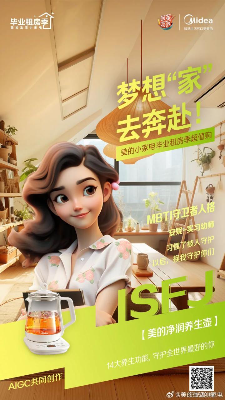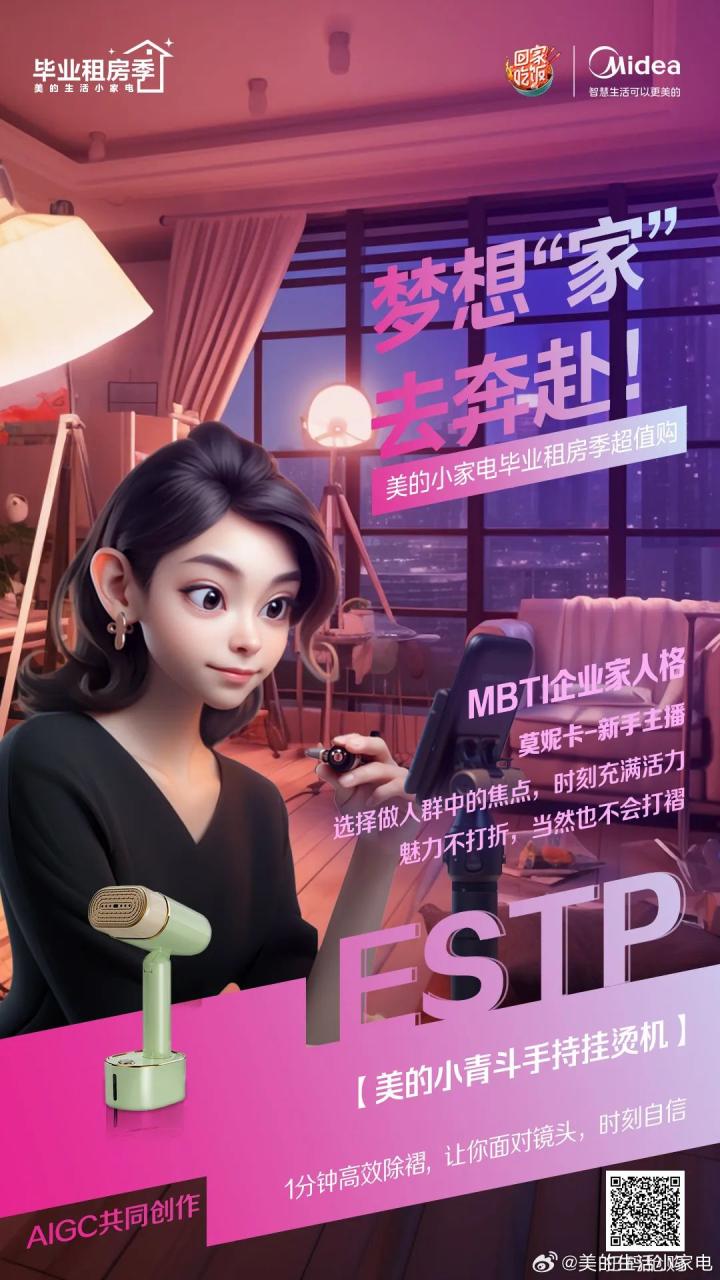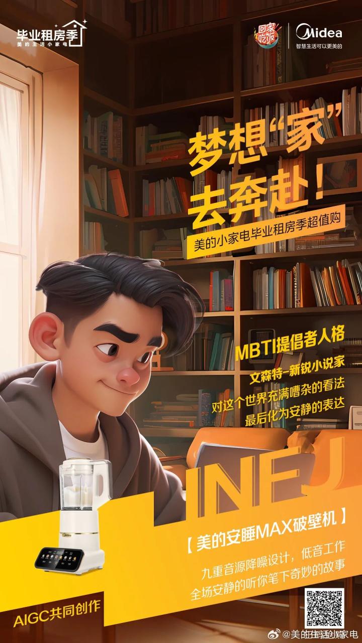 同样是MBTI元素的营销,美的在针对大学生毕业进入职场想要打造一个梦想“家”的营销中,同样抓住不同人格类型的特点,将MBTI理论与产品特质、品牌气质以及用户习惯相结合,凸显了产品的功能价值与人情味儿。