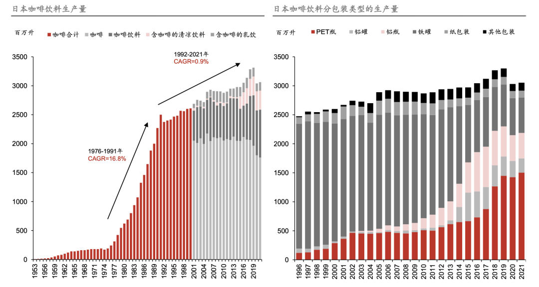 同时按照日本咖啡饮品的消费走向来看,除了瓶装咖啡占比不断提升外,消费者对咖啡口味的需求将会变得更加多元化,例如会出现各类咖啡饮料、咖啡乳饮,而这些多元化的口味正是瓶装咖啡形态所能够承载的。