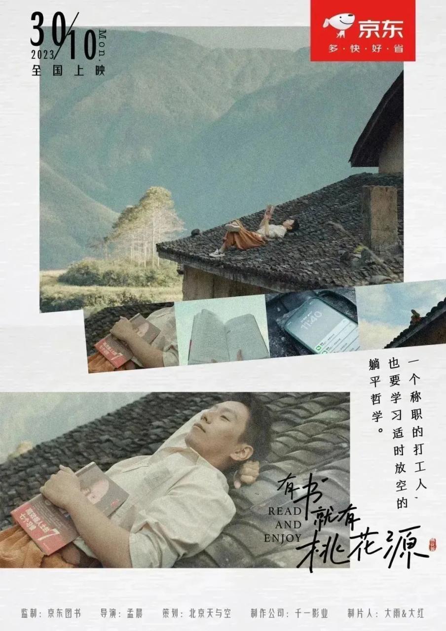 同时发布品牌片《有书就有桃花源》,在这支短片中,京东图书聚焦年轻人的精神内耗困境,用书名写了一段文案,看完视频被治愈到了。