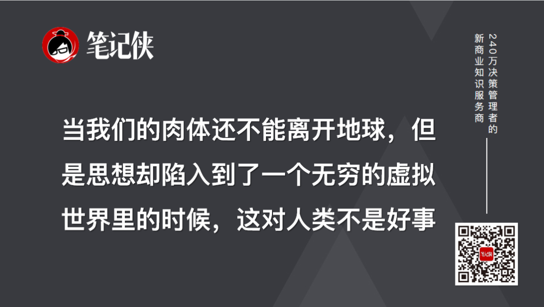 正如刘慈欣讲过的一句话,“当我们的肉体还不能离开地球,但是思想却陷入到了一个无穷的虚拟世界里的时候,这对人类不是好事”。