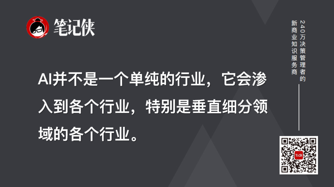 今天来看,AI也是,AI并不是一个单纯的行业,它会渗入到各个行业,特别是垂直细分领域的各个行业。