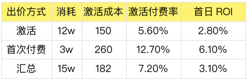 ● 出价方式:同时选择激活和首次付费两种出价方式,通过激活账户来拉低整体成本,首次付费账户来提升整体的ROI。