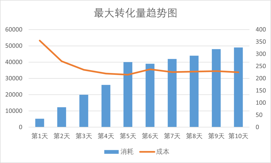 在项目稳定后的复盘中,我也对使用该产品后15天的整体投放数据进行了对比。结果显示,“最大转化量”产品在合理设置素材、预算和定向后,无论是在投放量级,还是最终转化效果上都明显优于常规投放策略: