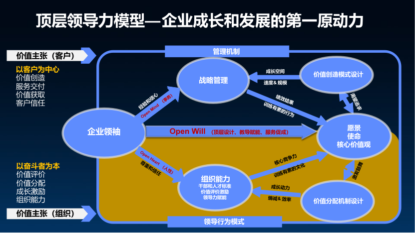 领导力在此扮演关键角色,他们需要关注顶层设计、价值创造模式设计、分配机制设计等,以形成完整的动力机制和业务活动闭环管理循环。