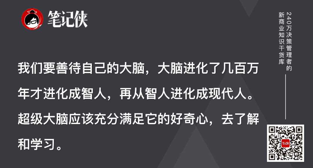 我们要善待自己的大脑,大脑进化了几百万年才进化成智人,再从智人进化成现代人。超级大脑应该充分满足它的好奇心,去了解和学习。