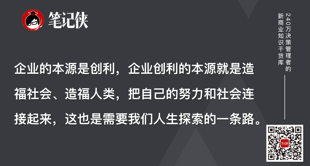 企业的本源实际是创利,企业创利的本源就是造福社会、造福人类,把自己的努力和社会连接起来,这也是需要我们人生探索的一条路。