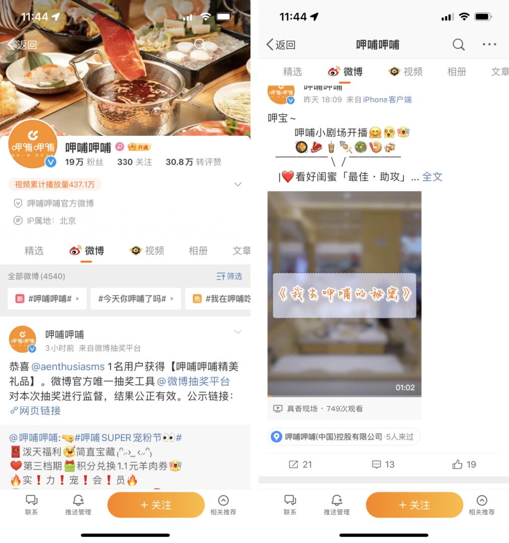 呷哺呷哺很早就建立了以微信为核心的线上矩阵,并在抖音、小红书、微博等不同平台都进行了运营,多渠道触达用户。