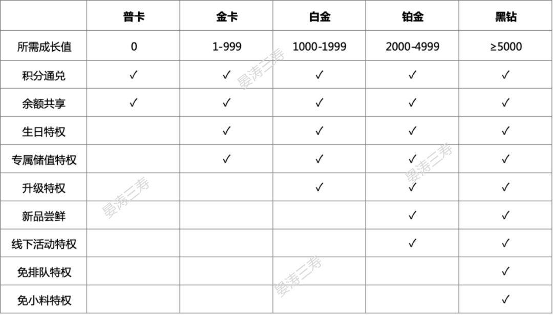 对于同行的成长会员,呷哺呷哺在会员权益算是下足功夫。主要有三大特点: