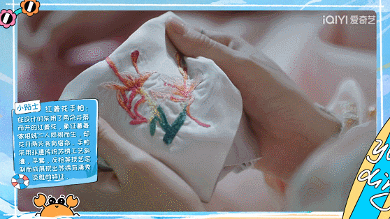 团综中出现的红姜花手绢、公主浮雕团扇
