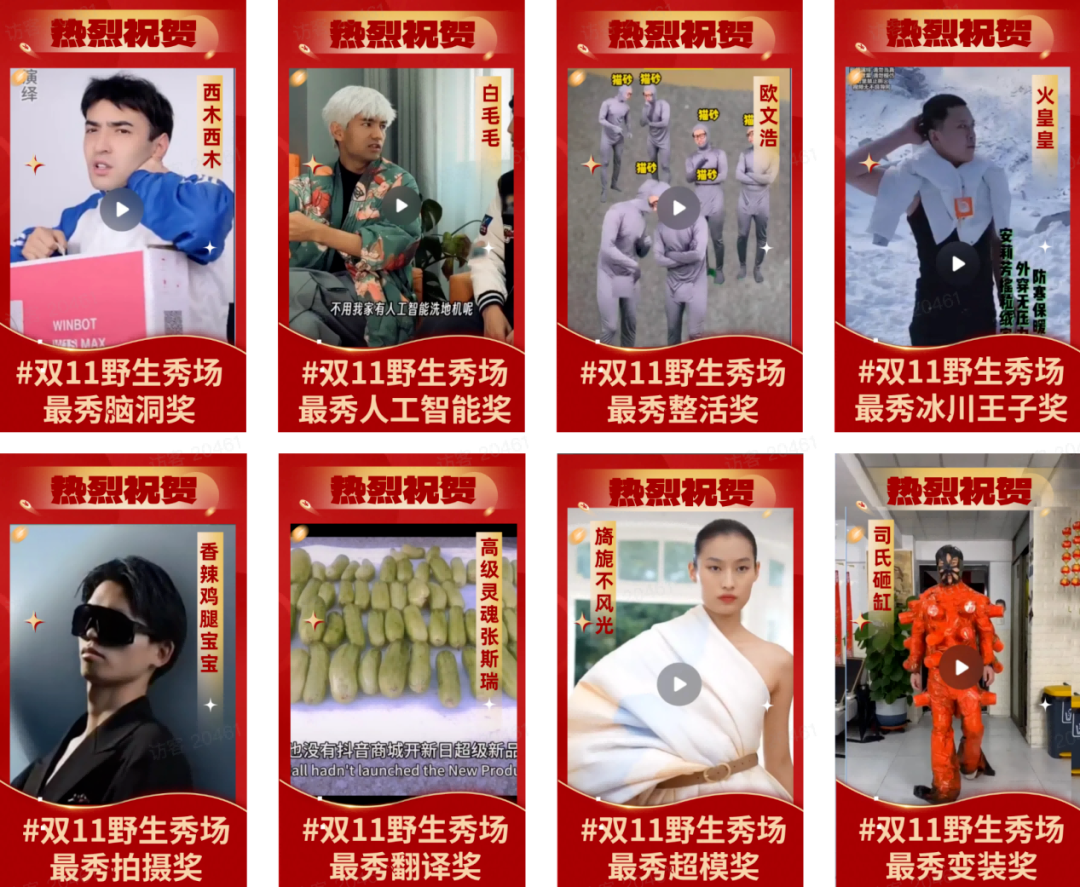 直播中,王祖蓝为创意频出的达人颁发同样颇具创意的奖项,也为#双11野生秀场挑战 做了一个漂亮的收尾,助长开心氛围达到最高潮!