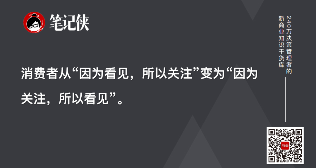 媒体环境发生巨变,消费者从“因为看见,所以关注”变为“因为关注,所以看见”。