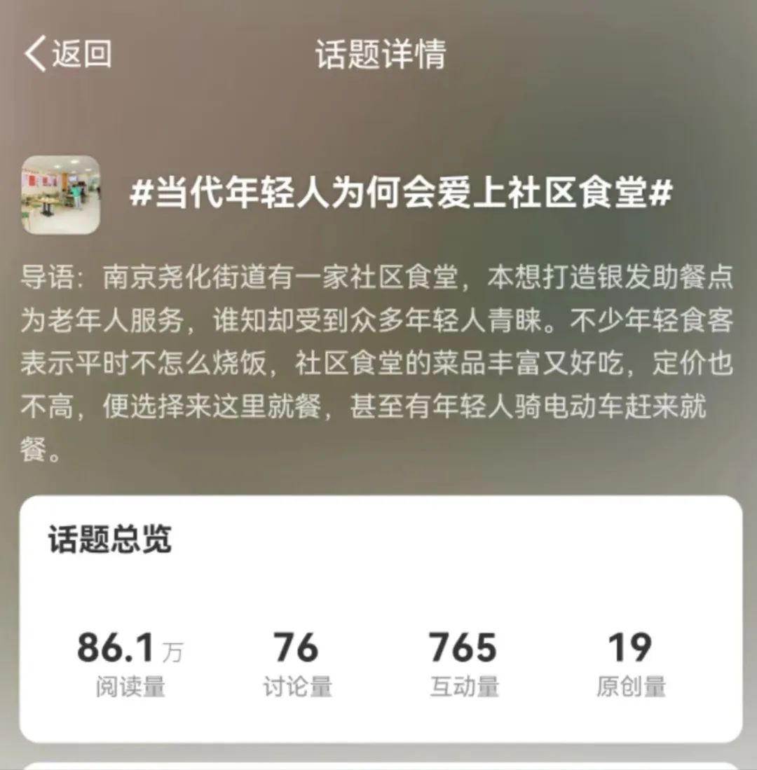最近,“社区食堂为何吸引年轻人”这一话题冲上了热搜。许多年轻人开始涌入社区食堂,与爷爷奶奶们成了饭搭子。