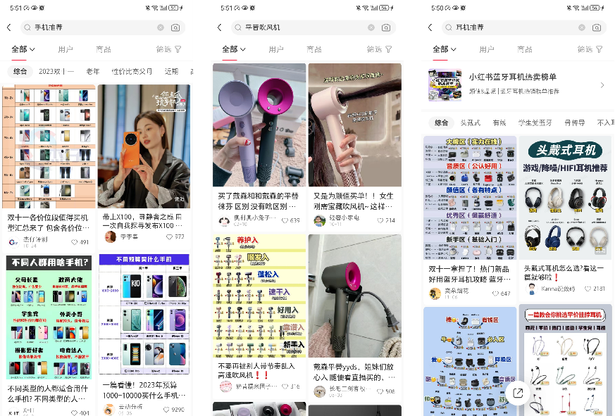 比如在主打“种草”的小红书平台上,用户可以轻松找到大量电子产品性能对比的帖子,以及大牌平替款的帖子。
