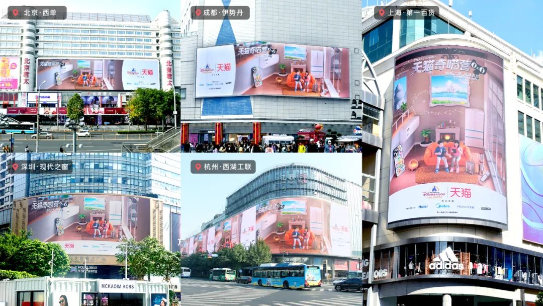 另外,在线下场景,「天猫奇喵营」还在北京、上海、深圳、杭州、成都5大城市重点区域的户外资源进行了霸屏投放,以城市人群最日常、最高频经过的生活空间作为信息传播的核心触点带动全城的关注。