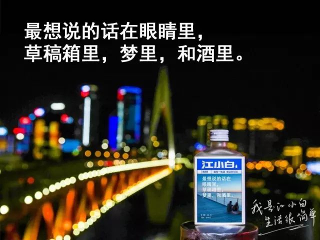 某新锐白酒品牌的传播文案“最想说的话在眼里,草稿箱里,梦里,和酒里”,没有说悲伤,却每个字都在表述压抑,不悦的情绪感迎面而来,情难控,意难平。