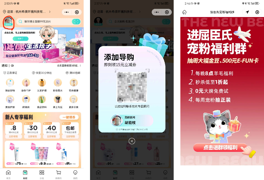 屈臣氏在小程序【屈臣氏】中同样设置了私域引流的触点。