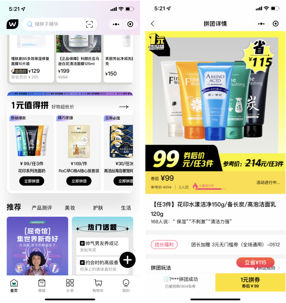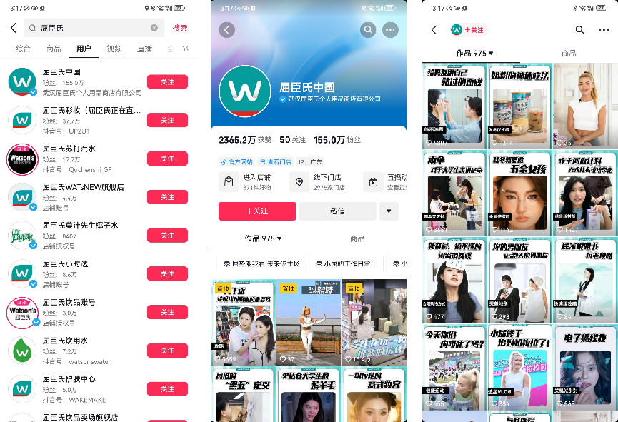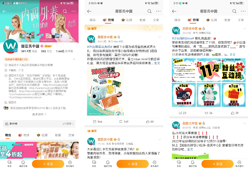 关于这一点,屈臣氏很早就建立了以微信平台为核心的矩阵,并在抖音、微博等不同平台都进行了运营,这使得它拥有可以全渠道高效触达用户。