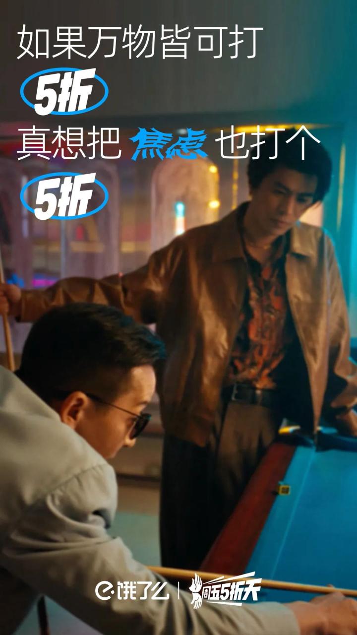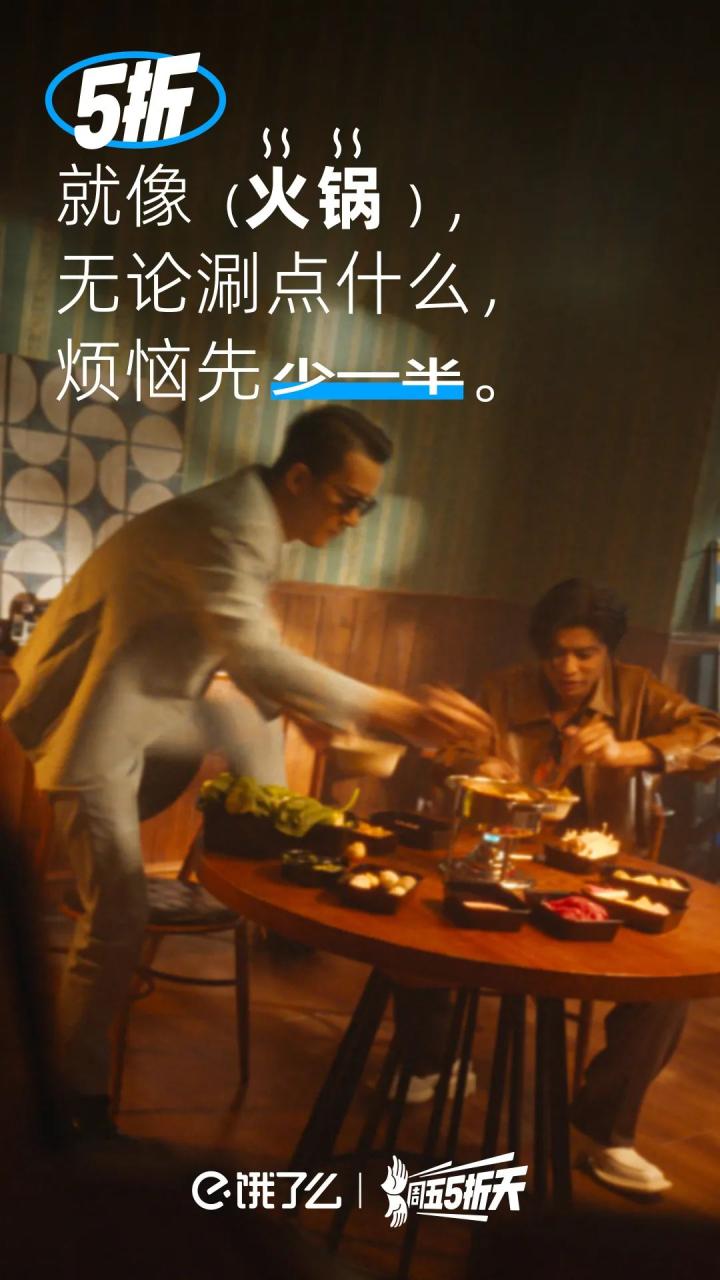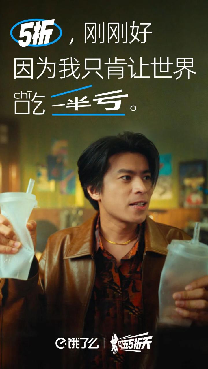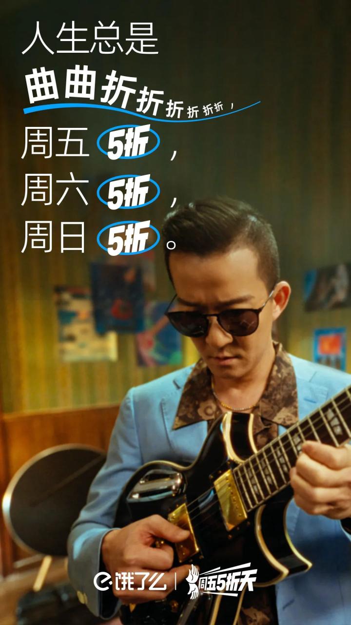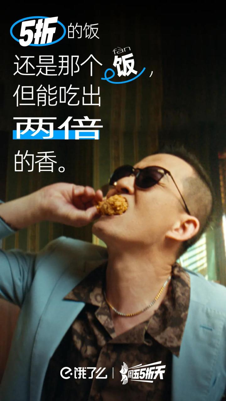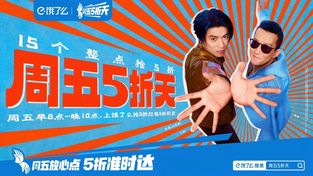 它把一个商业的品牌活动嫁接到一种大众熟悉的元素上,借助国民对五条人乐队的熟悉和喜爱,加深对饿了么周五5折天的记忆。