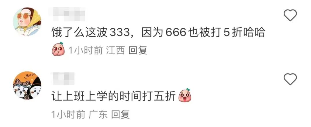 有人直呼“饿了么这波333”,还有人调侃“饿了么这个月友交定了”,更有人发起灵魂提问“体重能不能也打5折”……