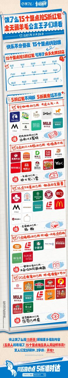 一方面,饿了么打造了多个触点,在周五这天的15个整点狂撒红包,让更多的消费者亲身参与到活动中。