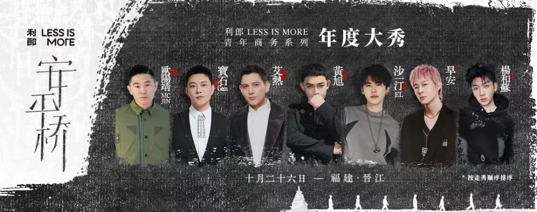 不仅如此,利郎的安平桥走秀带来由欧阳靖、宝石老舅、艾热、黄旭、沙一汀、早安、杨和苏组成的 “说唱圈半壁江山”,为此次发布的“压轴”。