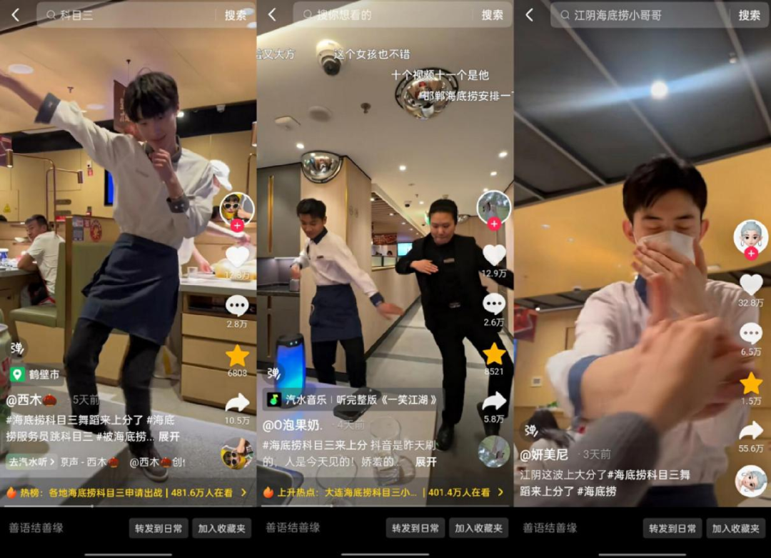 “海底捞科目三”相关话题登上抖音、微博、百度等社交平台热榜,话题播放量超过16亿次。