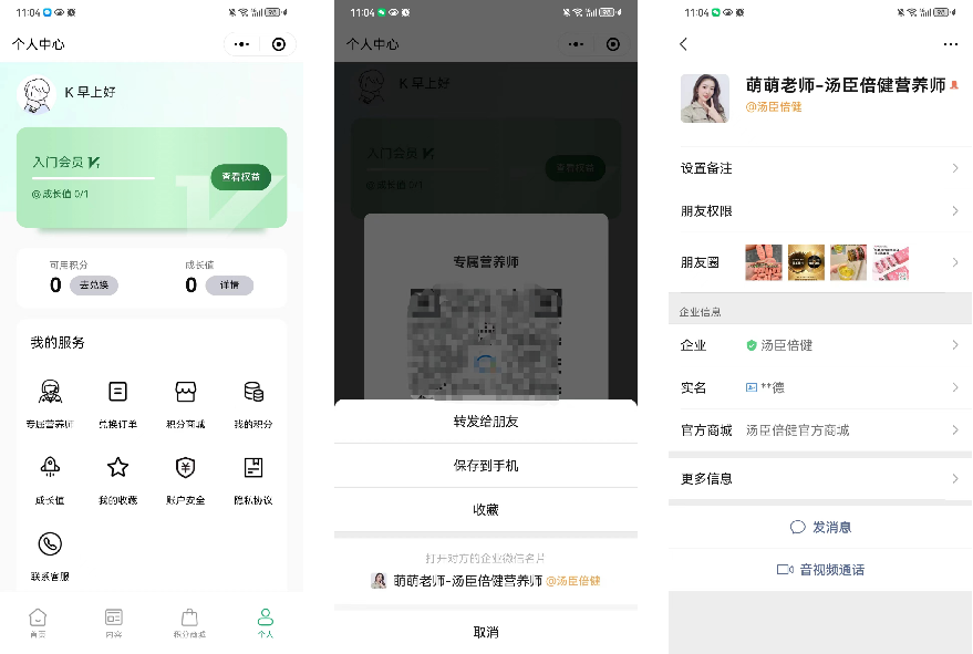 具体路径:小程序【汤星球】--个人中心--专属营养师--扫码添加企微