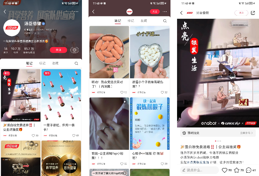 汤臣倍健在小红书的账号有10.7w粉丝,获赞与收藏85.2w。
