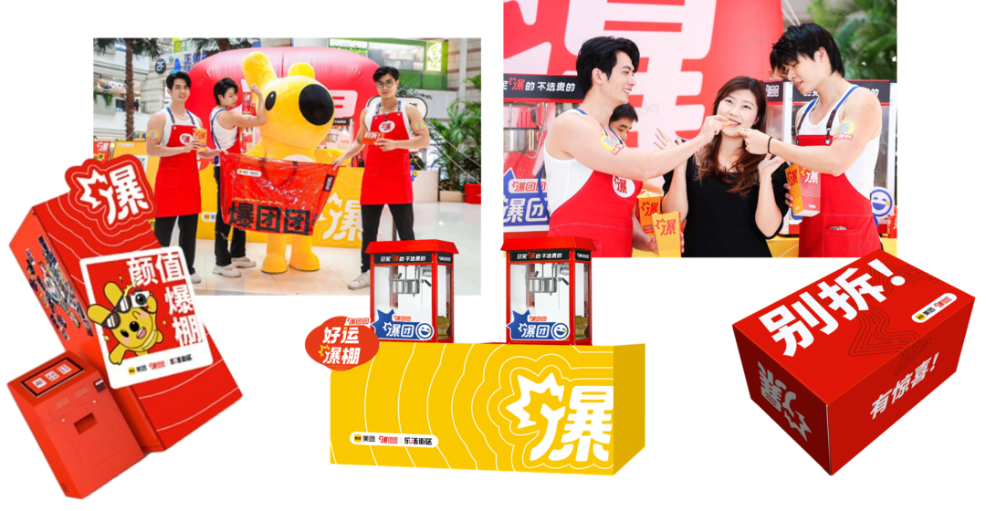 这个秋天,男颜、口福、显眼包氛围、易“出片”、难度适中的寻宝打卡、人气明星点缀等必“火”元素,一次性出现在美团到店直播IP “爆团团”主导的商圈寻“爆”快闪秀中。20天内,“寻爆”主题趴在4大城市的5大商圈闪电铺开,超大视觉传播符号,沉浸式的互动打卡,充分激发消费者娱乐精神,同时给予商家经营美好生意的信心期待,最终为“爆团团”带来“即插即用”的线上直播声量。