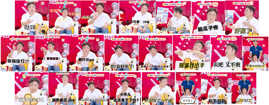 直播中,借势嘉宾乔杉现场“妙语耍宝”的表达,快速定制表情包及二创切片,激发消费者自主分享;叠加人气明星谢娜、五条人形象ID植入的直播间引流海报的助力,成功引发线上二次发酵,形成有影响力的热点事件,“爆爆团”IP的特色得到充分传达。