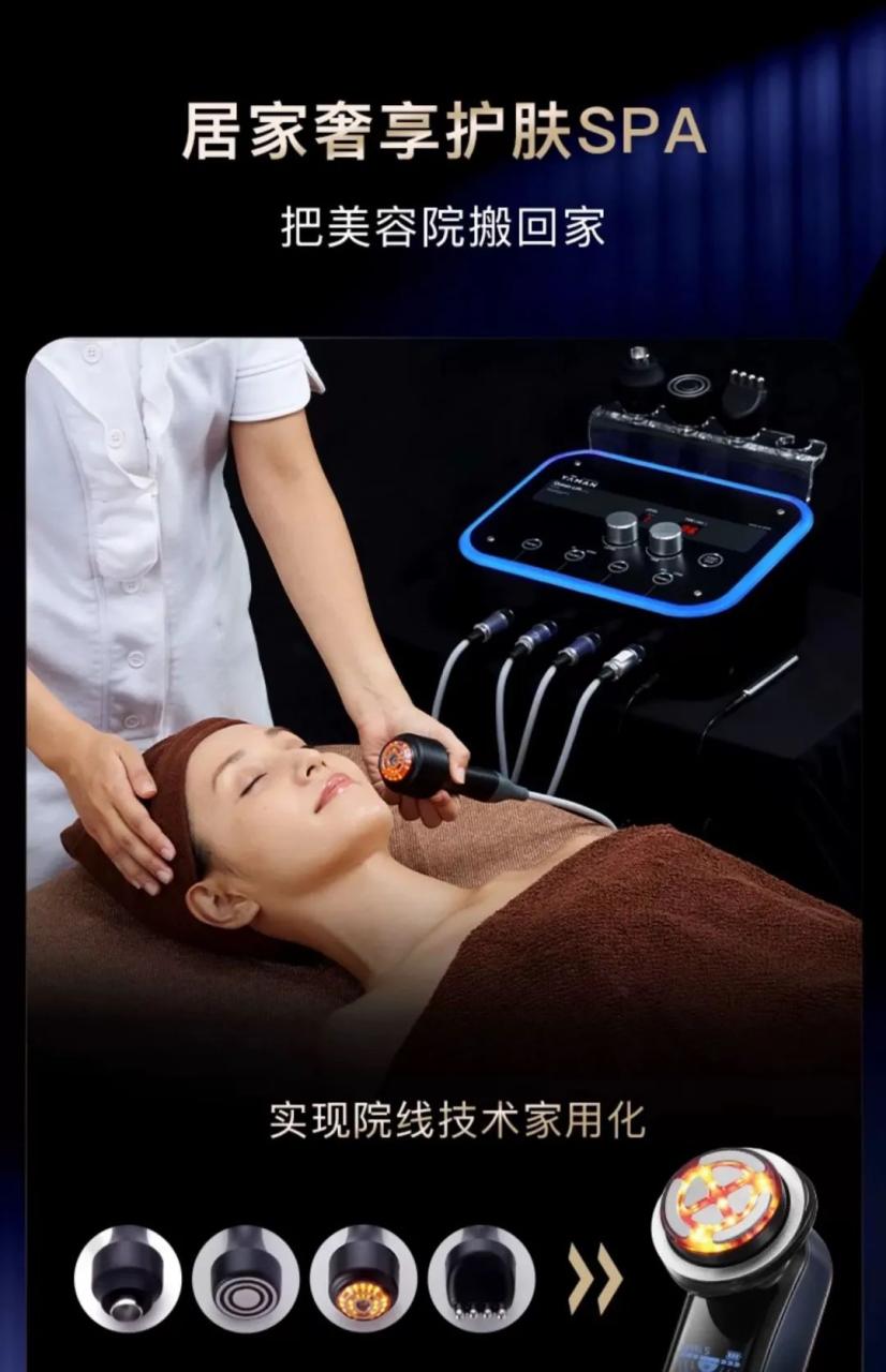 家用美容仪屡屡夸大的宣传功效,看上去与专业医美并无太大区别:通过“射频能量”产生“热场”,作用皮肤胶原蛋白产生“提拉紧致”效果,以“抚平”皱纹,达成美容效果。雅萌常用的宣传语也是“把美容院搬回家”。