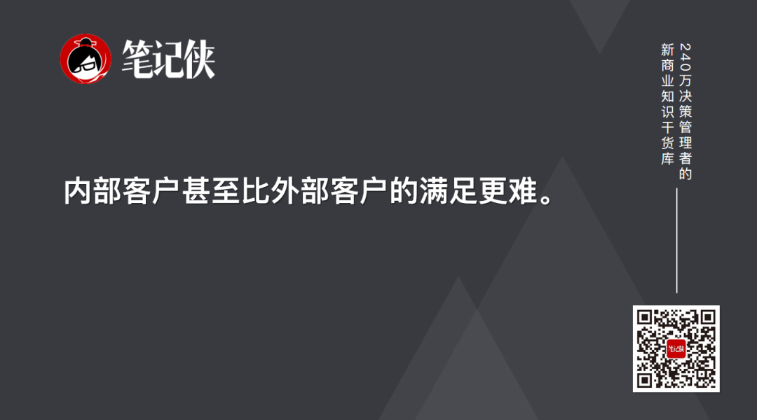 除了要满足外部客户需求之外,还有一个非常重要的价值链,就是内部客户的满意。