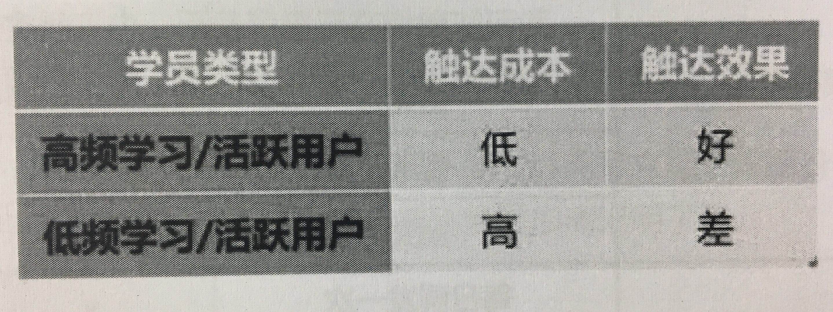 在运营过程中,我们通常从学完率和APP活跃天数来进行人群的划分。然而却发现高学完率和高活跃度的人群本身就是高度重合的;高学完率高活跃度的学员通常在各种渠道都很容易被触达;而大多数低频活跃/学习的用户,却只能通过短信这种高成本的方式触达。