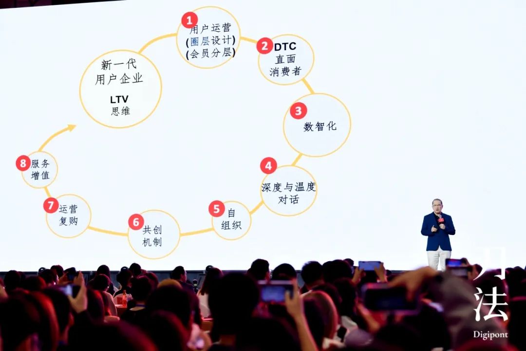 新一代用户企业,他们善于进行深度对话共创,包括通过真人导购员/虚拟导购员和用户的深度对话,能够实现 24 小时不断撩拨用户,不断把用户的想法找来进行共创,并且通过 VOC 这种用户自身的软件转化为公司的反馈,给每个部门自动分发任务。他们的特点主要表现为:重视以用户生命周期为中心、而非产品为中心的商业模式;经营用户 LTV 长尾价值;用户深度参与 4P 流程;用户驱动增长。