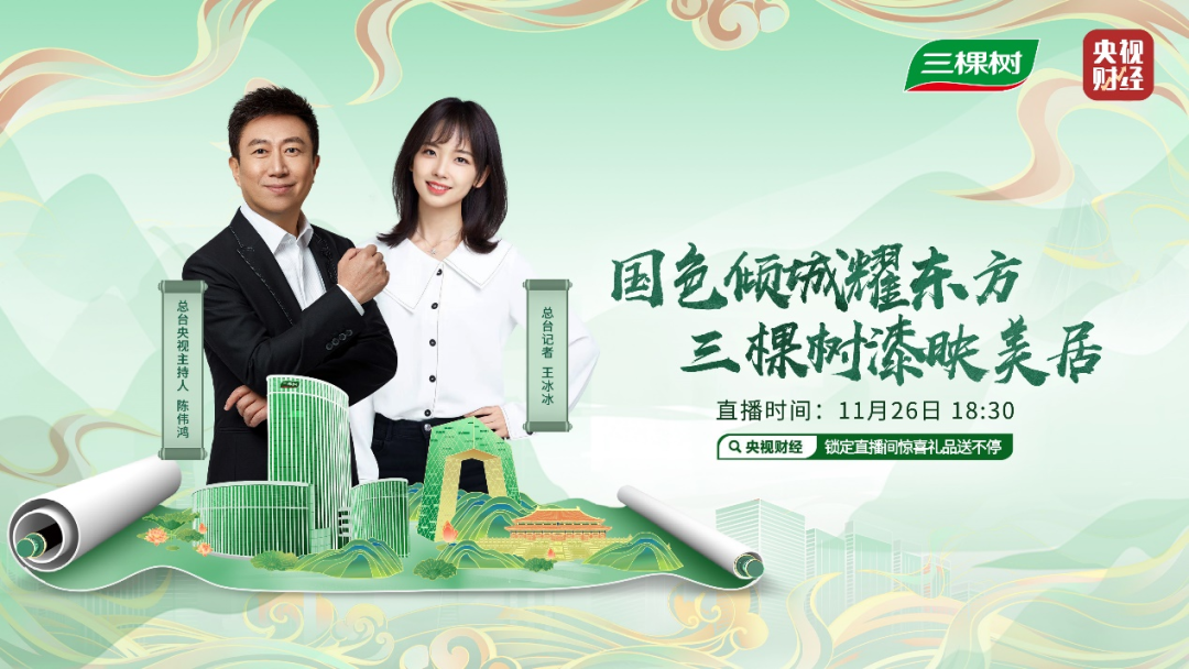 11月26日,三棵树再次携手央视财经,与总台央视主持人陈伟鸿、总台记者王冰冰与原中国美术学院副院长、中国色彩学科领军人物宋建明教授、旅行博主房琪kiki,以及短道速滑男子500米世界纪录保持者武大靖一起走进“三棵树健康家”概念空间,以“五色观生活”为主线赋能品牌叙事,再次强化了高端国漆的品牌形象。