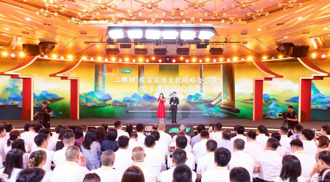 8月8日,三棵树与故宫宫廷文化达成战略合作。品牌以“用国色绘就新时代的美好生活”为主题在中央广播电视总台梅地亚中心举办发布会,打造了一场融合古典乐器秀、舞蹈秀、歌曲演绎等多种艺术形式联袂成就的视听盛宴,通过色彩创意让三棵树和故宫宫廷文化联名艺术漆新品成功出圈,创造出属于“中国漆”的美学浪漫。