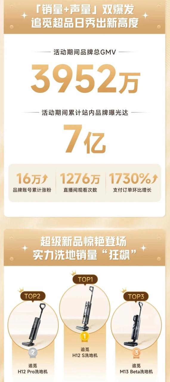 今年还有个变化,我们第一次在大促期间参与了快手的“大牌大补”频道。快手品类小二结合追觅的产品属性,帮我们找到了适合这个平台的产品,比如说他们建议历史爆发力比较强的品,或者说他们比较看好的一些品,进行定制货盘和特殊补贴。