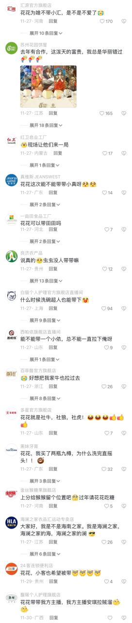 如在蜂花意外走红后,给用户形成了良心国货、国货就应该团结等印象。也让诸多国货品牌看见了蜂花身上的流量与光环,纷纷跑到它的抖音评论区、直播间等不同平台的账号下与其互动,在给品牌引流之余拉动了销售,也蜂花的评论区成为了白象、黑妹、舒莱、汇源、一亩田、白猫等众多品牌互动的“专区”,将短期的曝光变成了长期的流量与品牌资产。