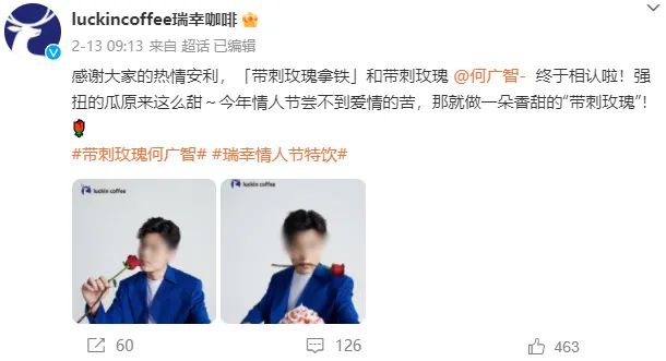 如在某网综中,脱口秀演员何广智那句「我可真是一朵带刺的玫瑰啊」火了之后,有网友发现瑞幸咖啡有一款产品为「带刺玫瑰拿铁」,而在网络上向品牌喊话:让「何广智代言」,让广智与「带刺玫瑰拿铁」相认等。这让瑞幸咖啡嗅到了“商机”,于是紧急提案,在极短的时间里上线了传播物料,官宣何广智为「瑞幸被迫产品体验官」,让网友尝到了「强扭的瓜真甜」,将整个营销的social感拉满了,让火遍网络的「带刺玫瑰」梗变成了品牌的新热梗,玩了一把妙不可言的“被迫”营销。
