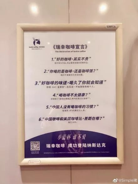 昨天我在等电梯时,看到一篇《瑞幸咖啡宣言》,这可能是瑞幸上市后做的首波推广。