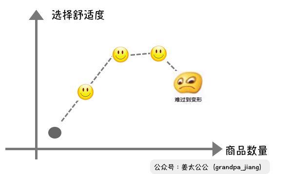 随着时间流逝,企业在开发比竞争对手更好的产品来获得更高的售价和更大的利润率的过程中(这句话好长 大喘气呼呼呼),通常“过度满足”了市场的需求。各种供给端为了增加选择的丰富性,不断给用户商品选项。当商品选择爆炸后,用户的选择成本反而增高。出现了需求的过度满足。
