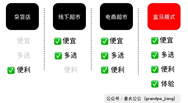 为什么盒马的3个颠覆性创新要素成立?姜太公公认为,原因有两个。