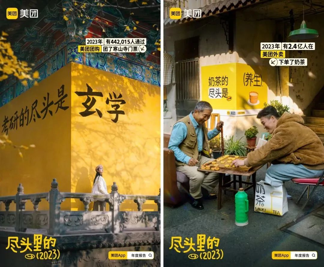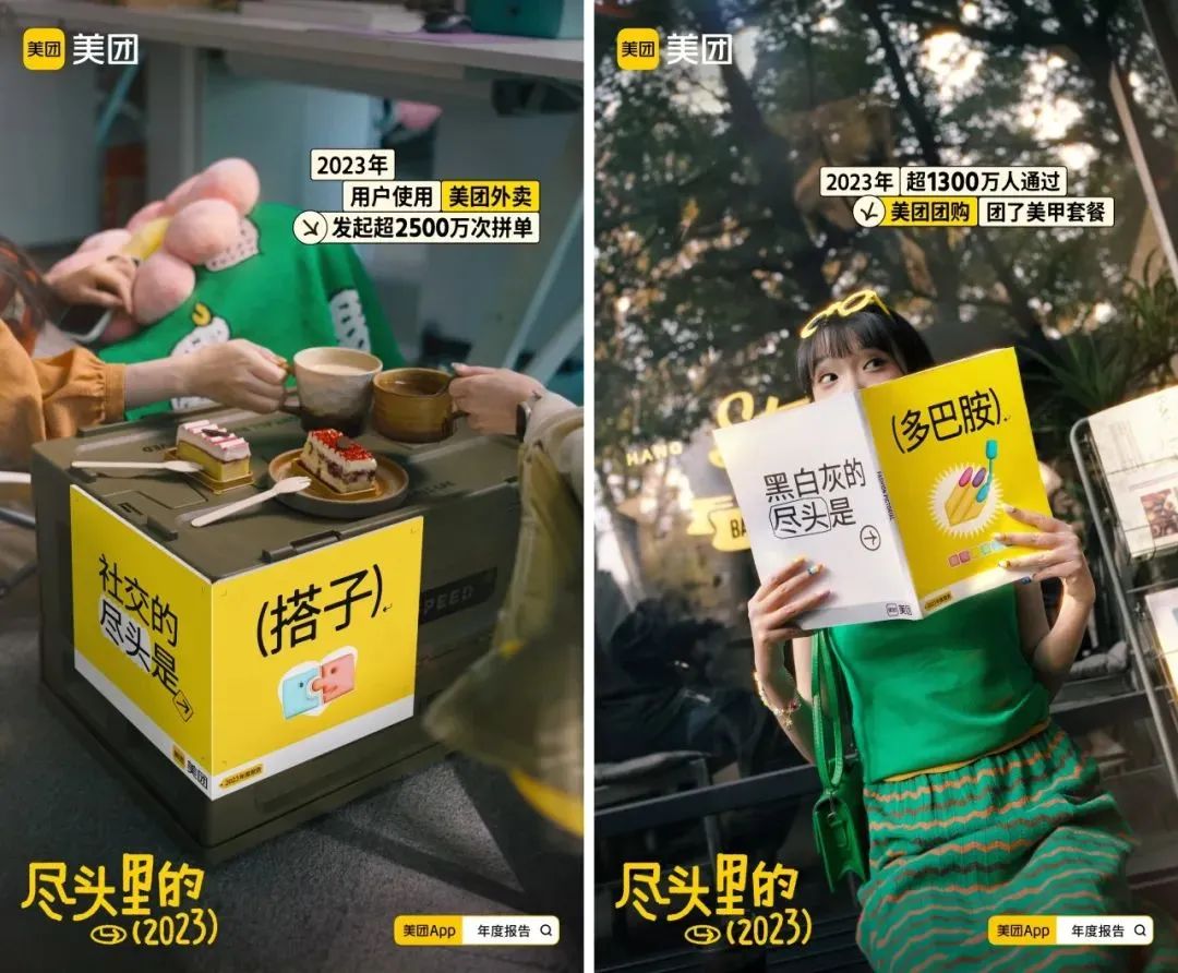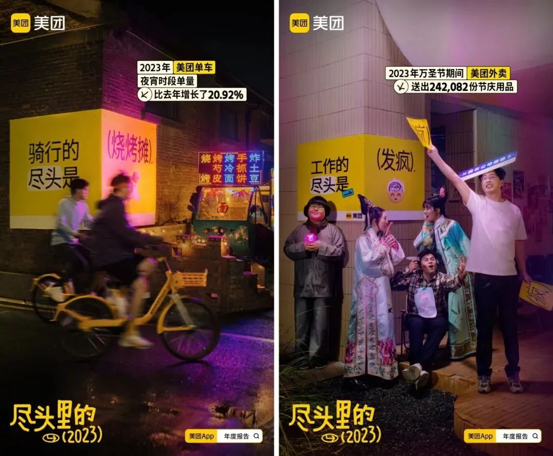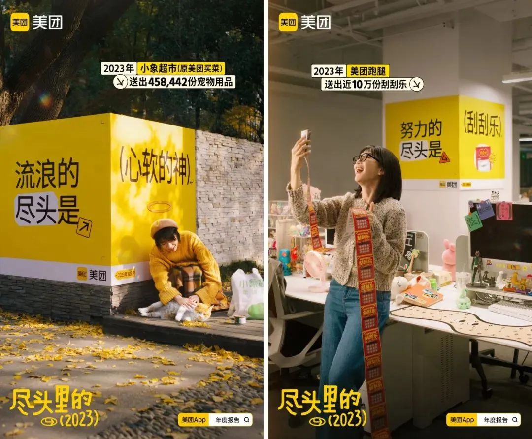 这个短片,美团特意囊括了一年来大大小小的热梗,利用大数据分析2023年的热度尽头,直抓年轻人的“潮”点,说最热的梗,做最美好的生活小帮手。