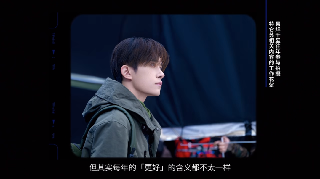 作为一支年终短片来看,特仑苏的这支短片虽然没有震撼的场景画面,但无论是从易烊千玺的个体视角切入,把他还原成为年轻人群体中的一员,用其日常工作花絮和新歌MV拍摄时工作室拍摄的侧写为内容,还是来自用户各不相同的真实UGC,它们讲述出的对于「更好」的理解,给人的感觉无疑都更为真实而细腻。